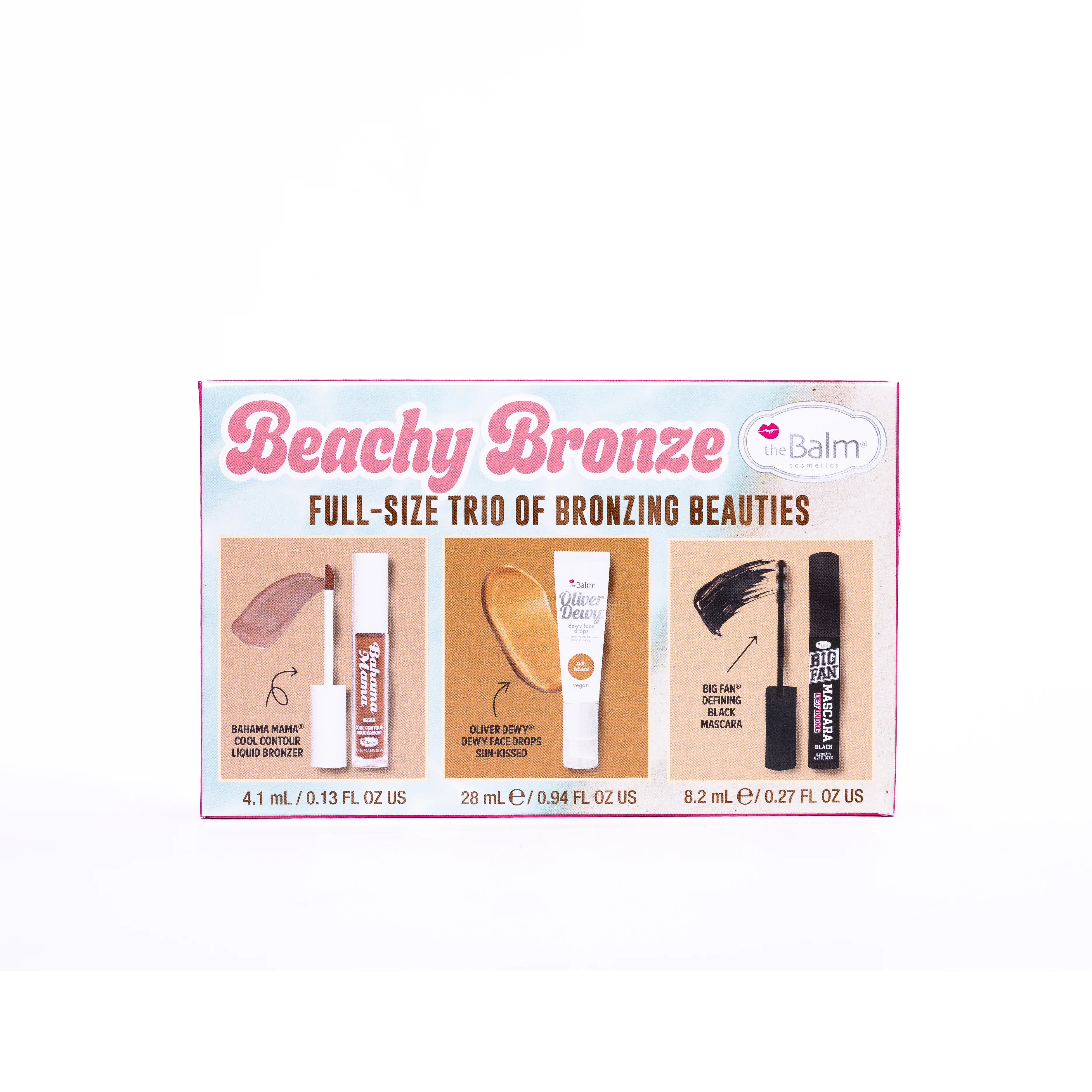 Glow big or go home. theBalm Full Size Trio Kits are your fast pass to looking cute with zero stress. Perfectly packaged and made to slay, these kits keep you glowing, blushing, and fluttering... no touch-ups required. Pick your vibe: Oh So Glow for that golden-hour glow, Pink, Please! for a flirty flush, or Beachy Bronze to fake that just-got-back-from-vacay glow, anytime.